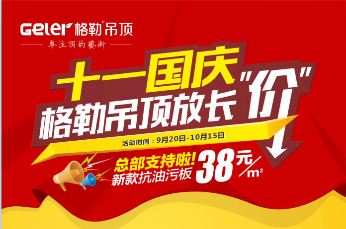 金秋十月,舉國同慶;神州大地,繁花似錦;家和國盛,樂曲如潮,借著這偉大而美麗的日子送上格勒吊頂最誠摯的祝福,我們愿您在這黃金假期省得樂趣橫生。