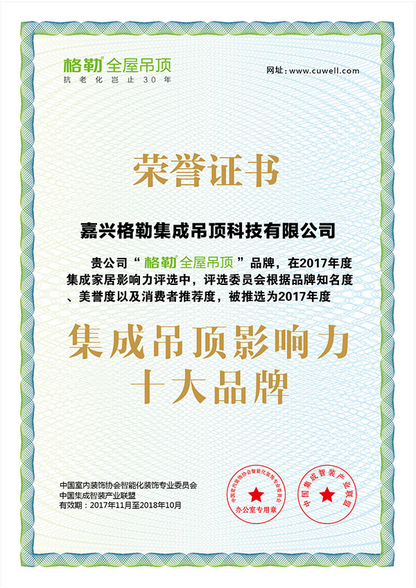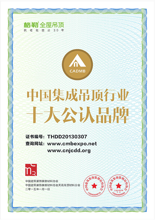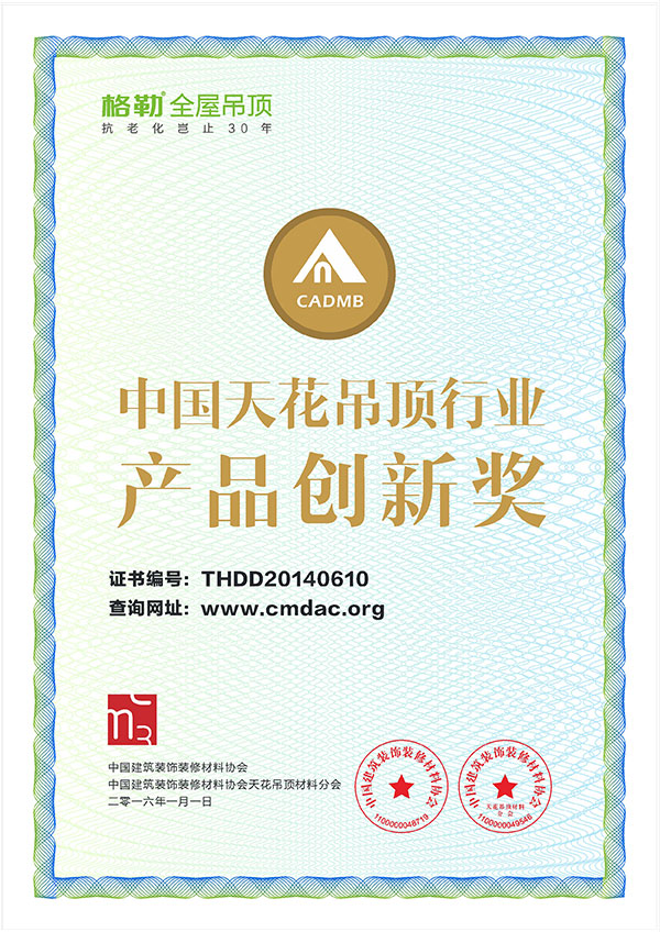 6月被授予“互聯網吊頂第一品牌”;被授予“中國綠色環保產品”;