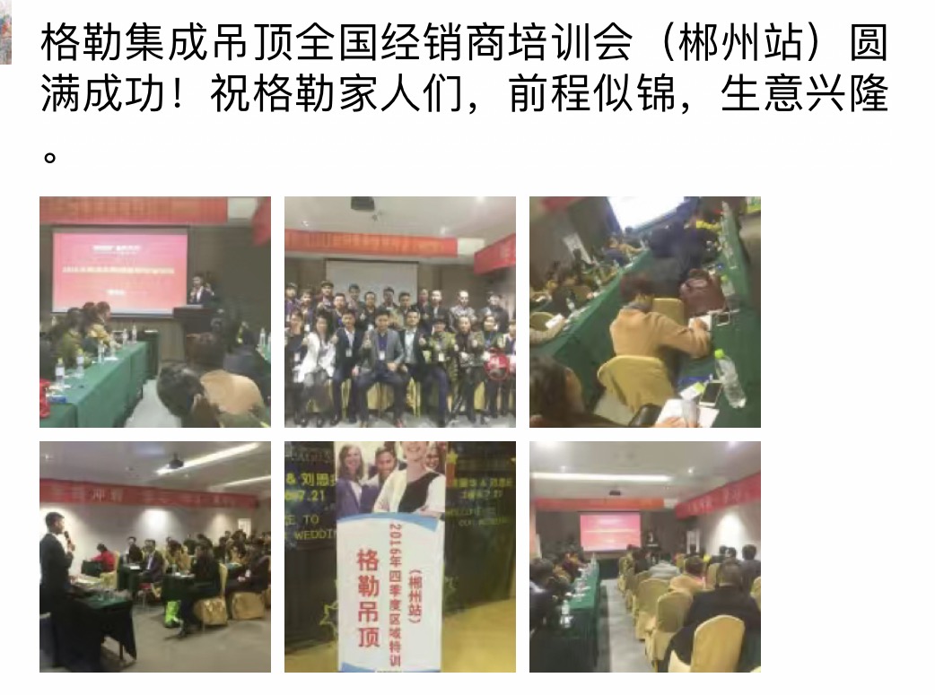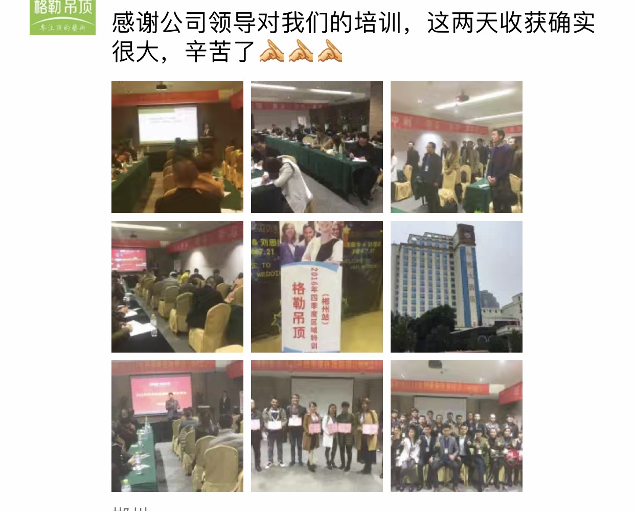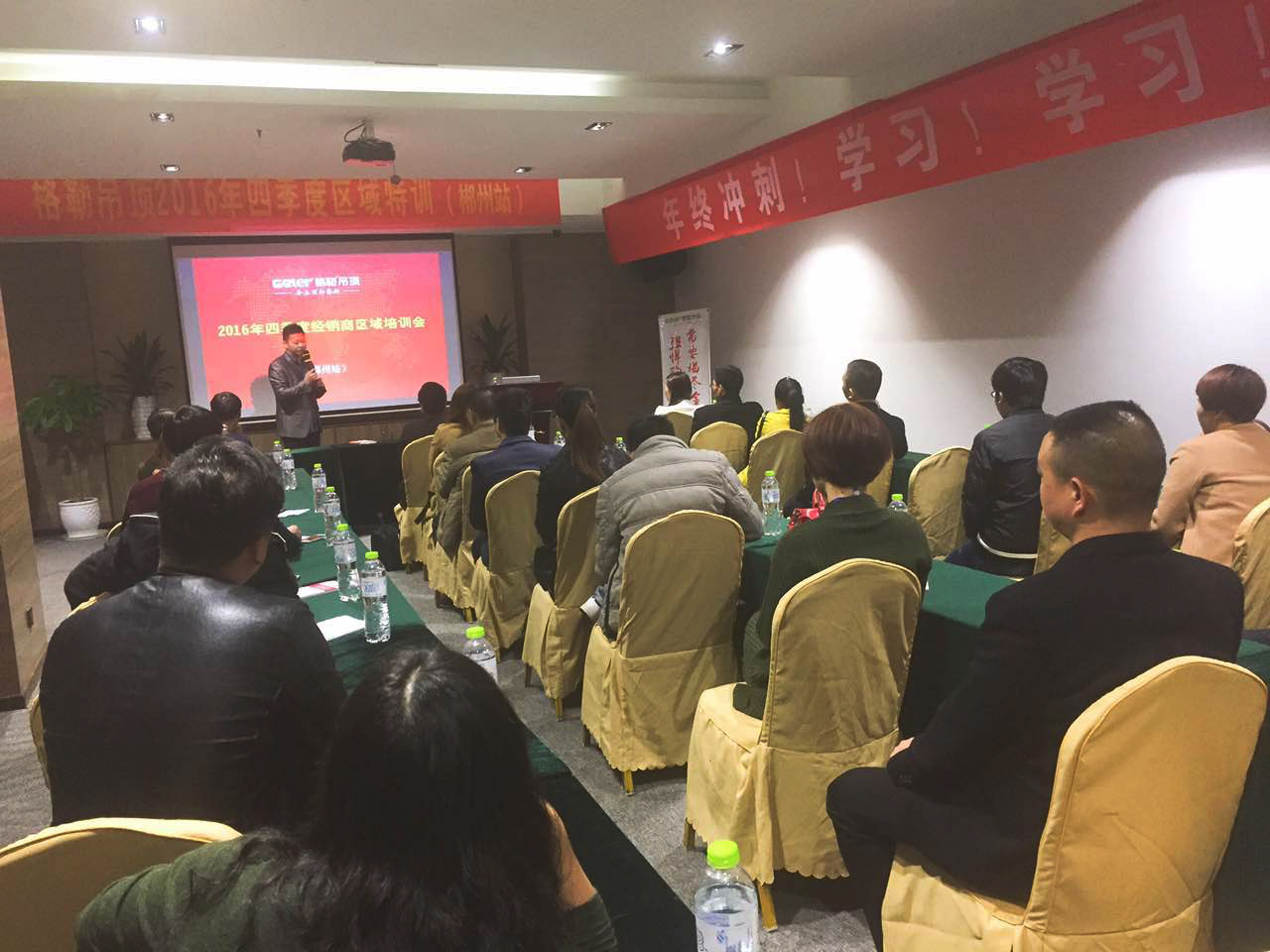 2016年格勒集成吊頂“好店面、新終端”推進會暨四季度區域特訓會重慶站剛剛落幕, 11月15號,第四站在鐘靈毓秀的福城湖南郴州今悅大酒店拉開序幕,來自湖南、湖北、廣西等地區的格勒家人參加了本次培訓會,針對公司產品、市場營銷、互聯網營銷等進行了系統的學習。