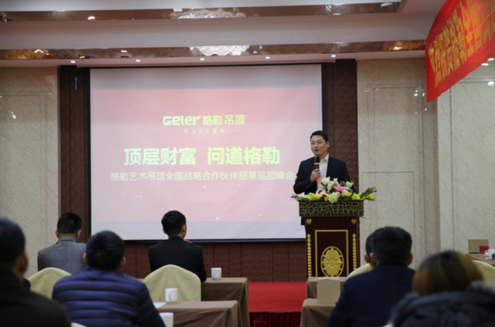 隨后,格勒營銷總監京總致辭,京總首先對目前集成吊頂行業進行了分析,同時對格勒前瞻性的管理思維與戰略定位,以及對目前、短期、中長期格勒戰略邏輯進行了闡釋,為在場所有人勾勒出一個格勒吊頂未來的清晰輪廓。
