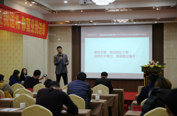 會議還邀請了格勒市場總監張總,張總提出營銷是一場戰爭,在市場新趨勢下,營銷已由賣產品轉向為賣策劃、賣服務,格勒擁有一支高素質、專業的團隊,定期為經銷商策劃市場活動、產品知識培訓,張總幽默的脫口秀式解說將會議推向了一次又一次高潮。