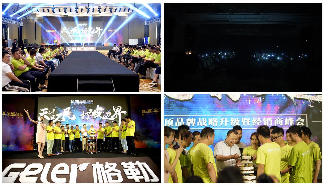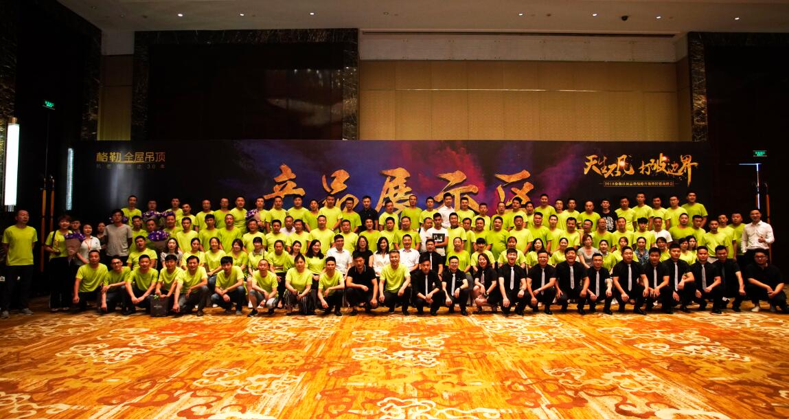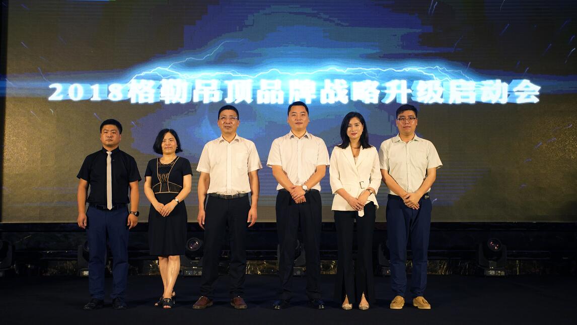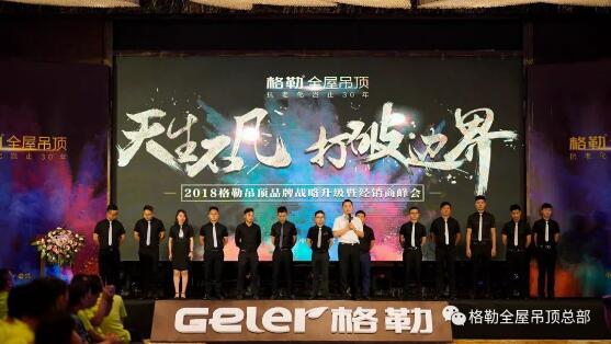 在全體經(jīng)銷商家人的見證下,各位領(lǐng)導上臺進行啟動儀式,2018格勒吊頂品牌戰(zhàn)略升級正式啟動,開啟了全新的品牌戰(zhàn)略。