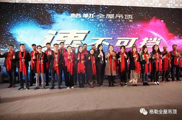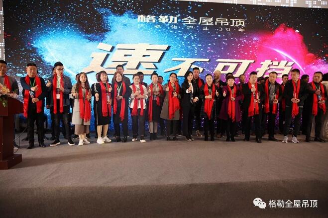 繼前一日的報到及三維軟件培訓,2019年3月26日,“速不可擋”格勒吊頂核心經銷商年會暨新品發布會在嘉興龍之夢大酒店舉行。總結過去規劃未來,布局2019營銷策略,新品發布聚焦品質,2019年,格勒將在品牌、營銷和產品多方面實現質的飛躍,加速奔跑,格勒人速不可擋!