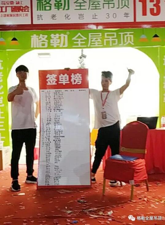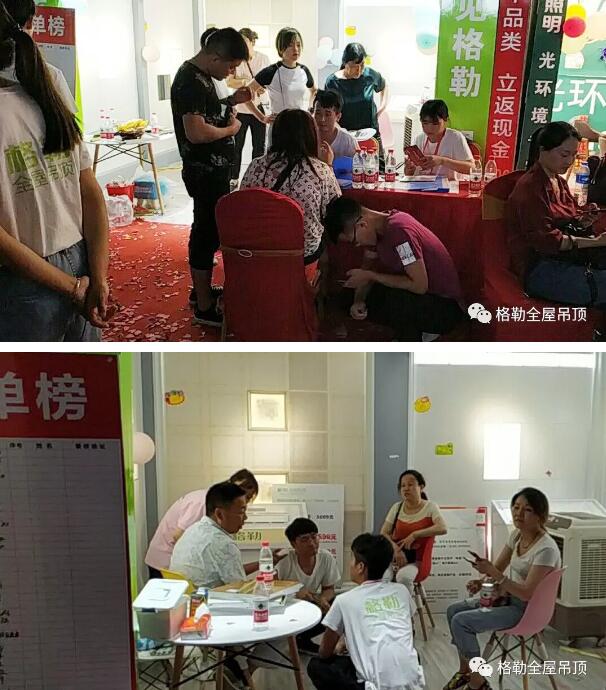 款式新穎,時尚環保,個性化量身定制,現場福利滿滿,格勒吊頂產品得到業主們的肯定并紛紛下單,把氣氛推向了高潮。活動當天生意十分火爆,現場成交100+單。火爆人氣、高單值、高成交率再一次印證了格勒吊頂的市場知名度和好口碑,格勒速度,勢不可擋!